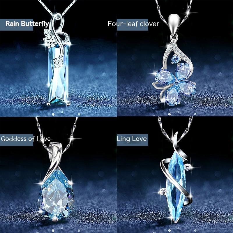 Fashion Blue Crystal European And American Retro Silver Plated Dignified Pendant