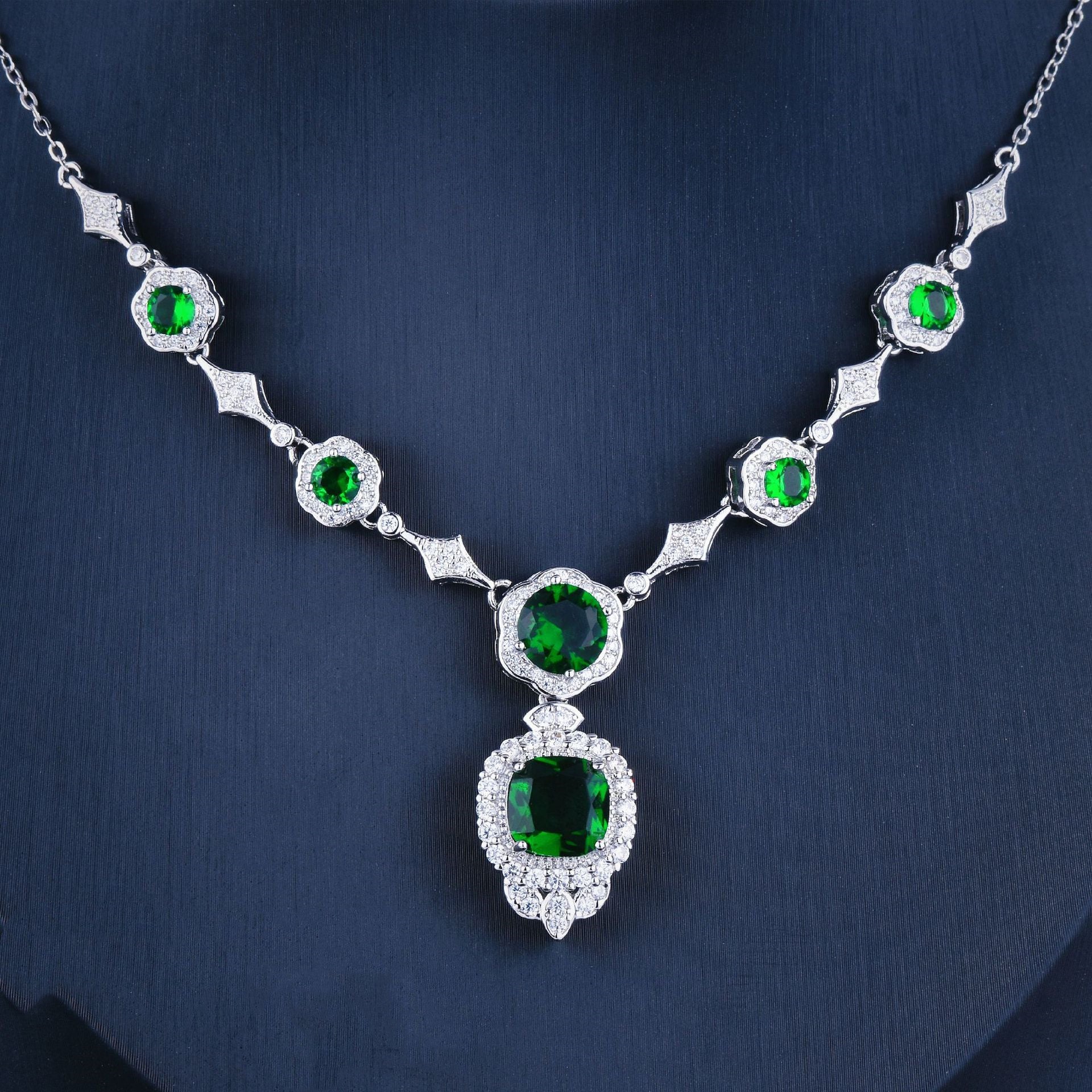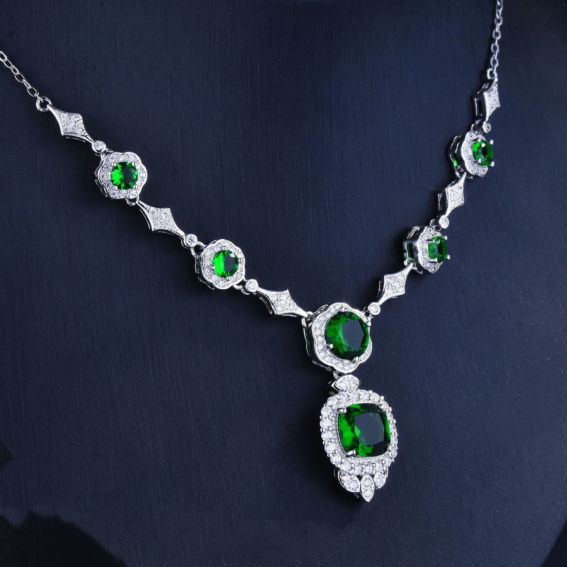 Noble Diamond Green Gem Evening Dress Chain Pendant Necklace Set