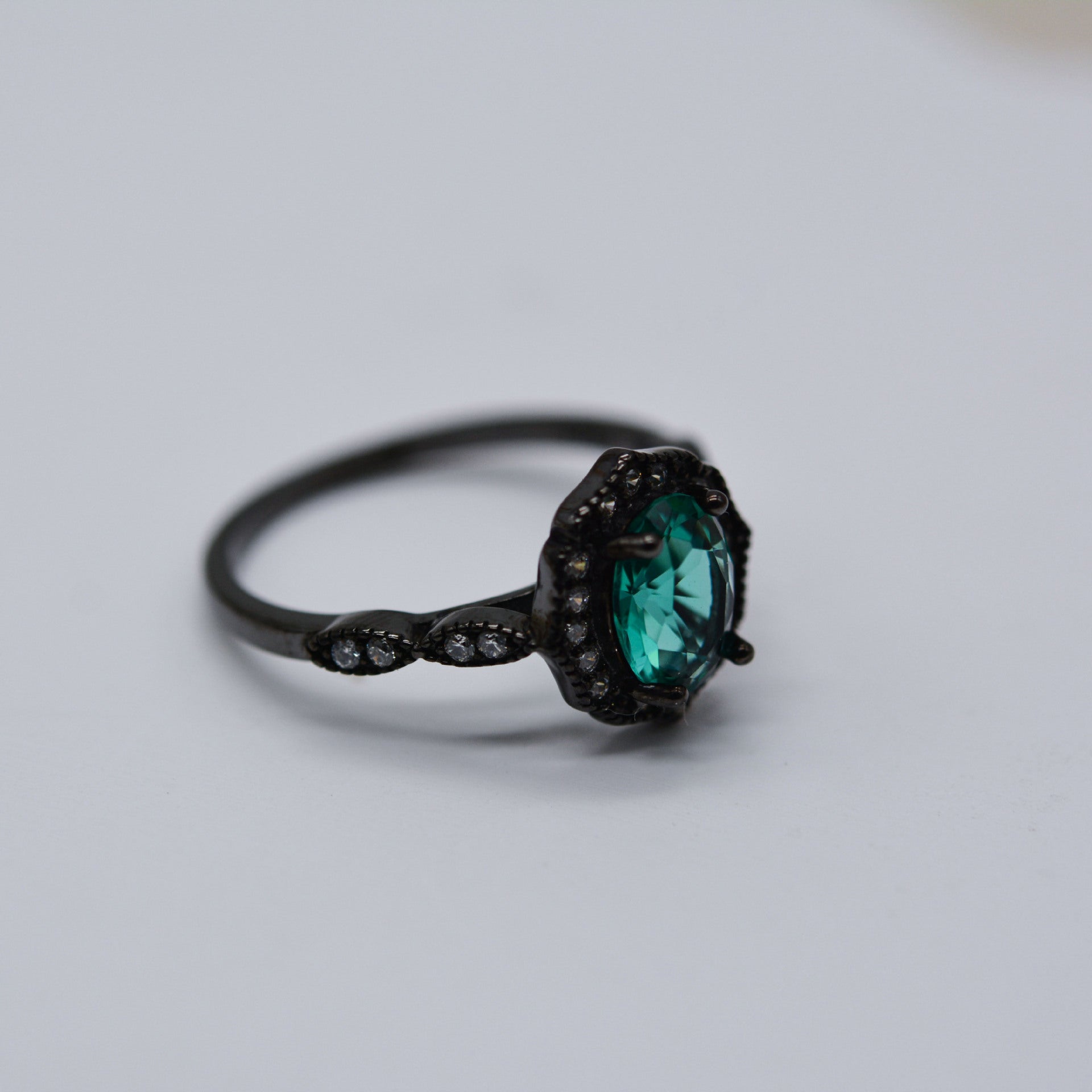 S925 Sterling Silver Black Gold Palaiba Glass Oval Ring
