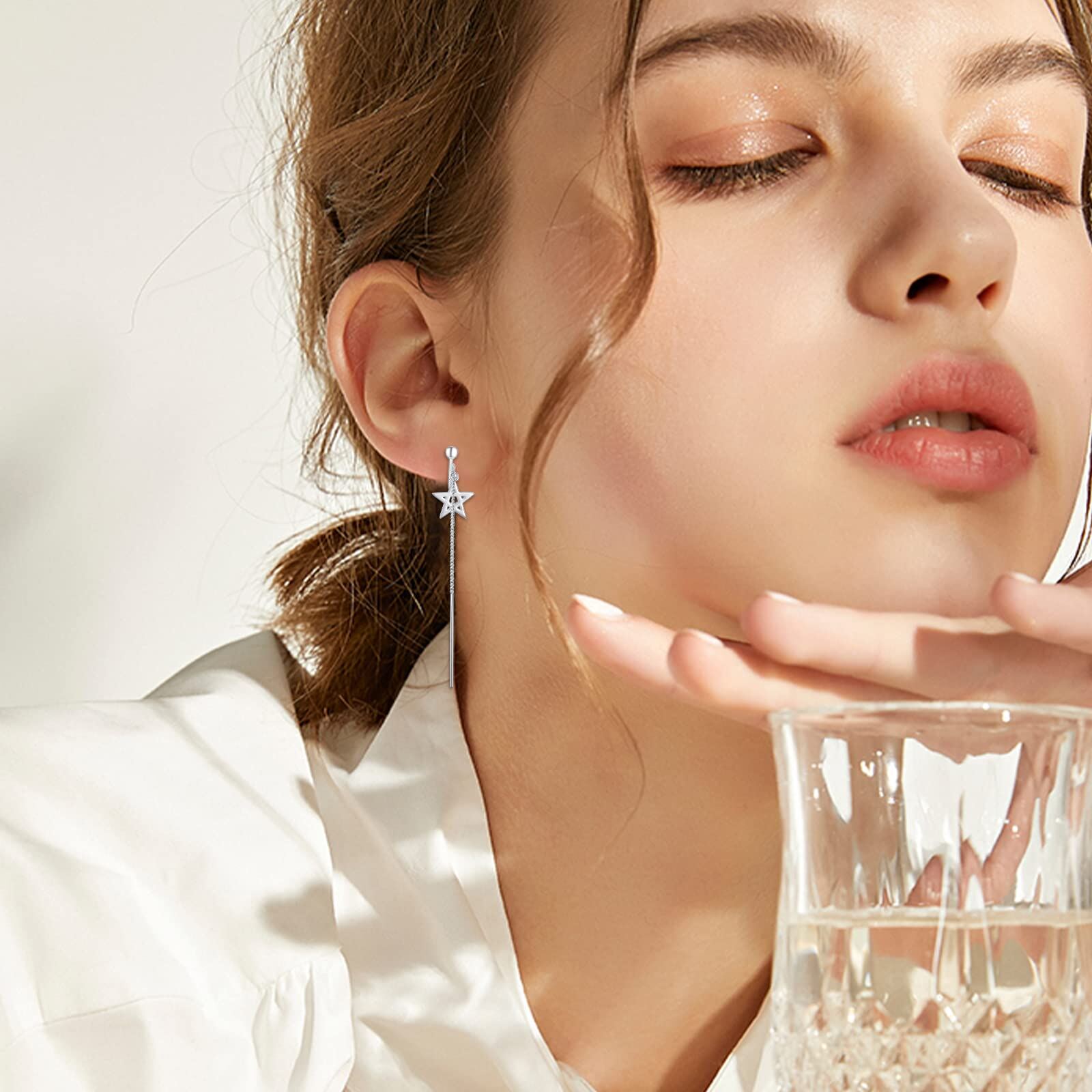 Star Chain Tassel Earrings, Earrings for Women Girls, Earrings No Piercing, Long Tassel S925 Sterling Silver Earrings