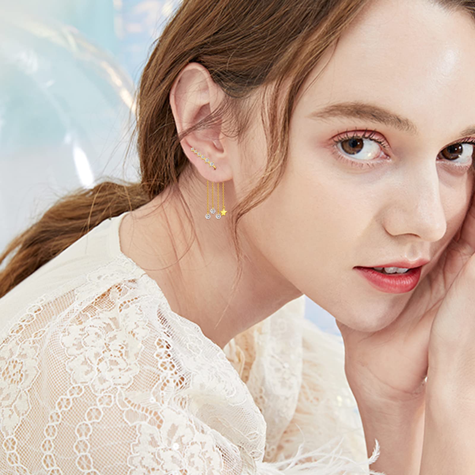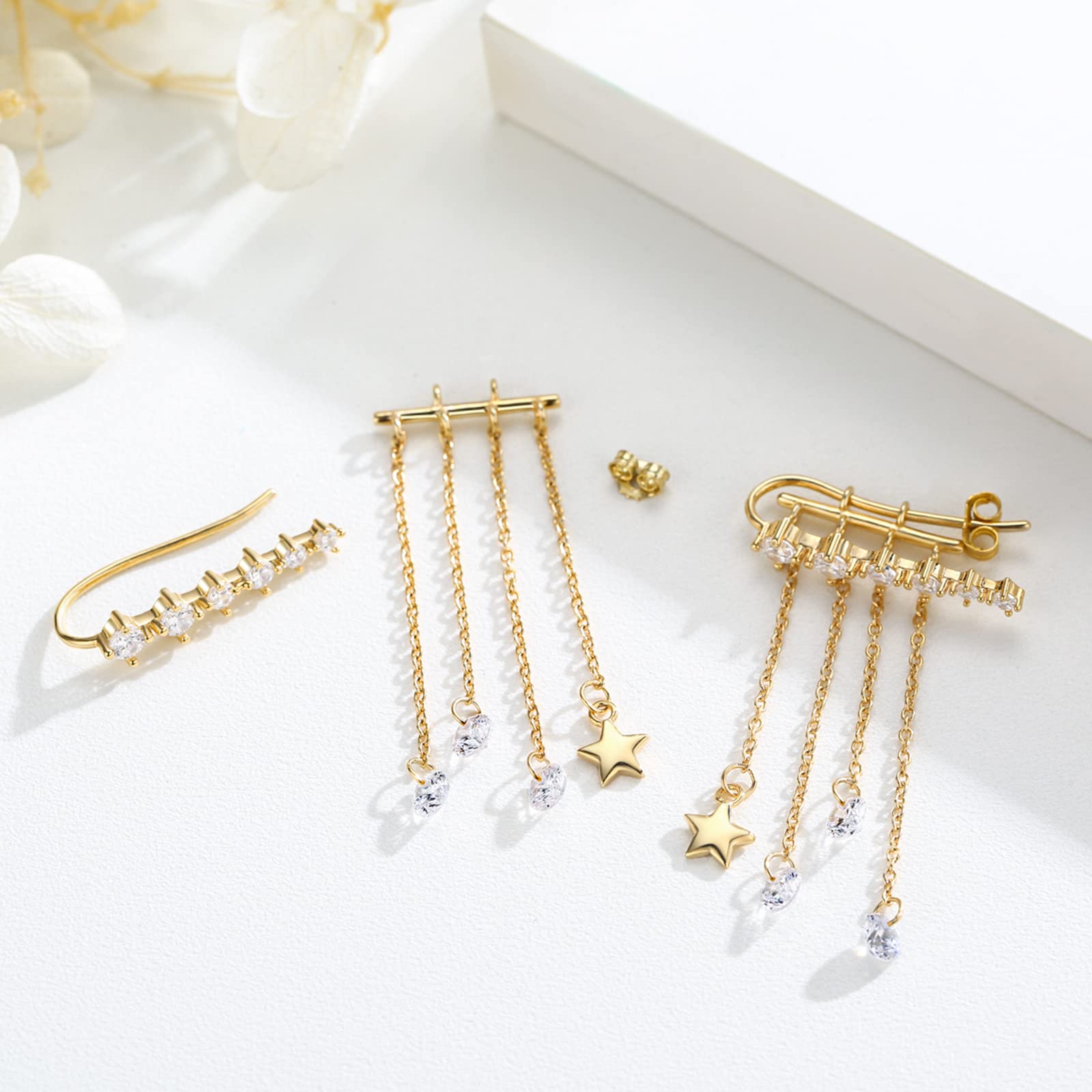 Stars Climber Earrings 925 Sterling Silver Plated Gold Crawler Earrings Tassel Chain For Women
